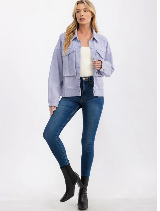 LONG SLEEVE BUTTON UP FRONT POCKETS WASHED DENIM JACKET